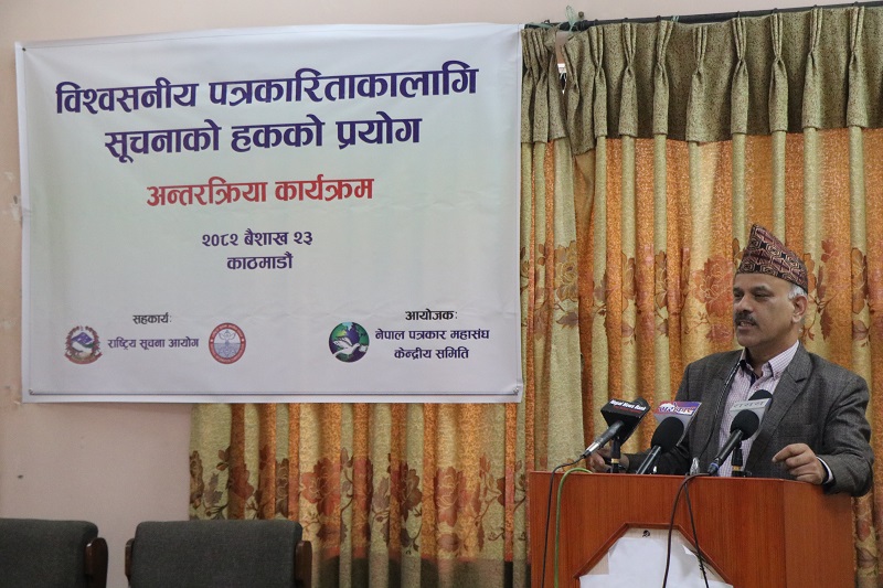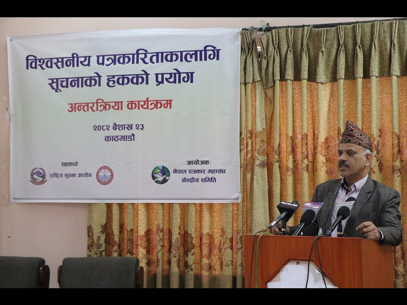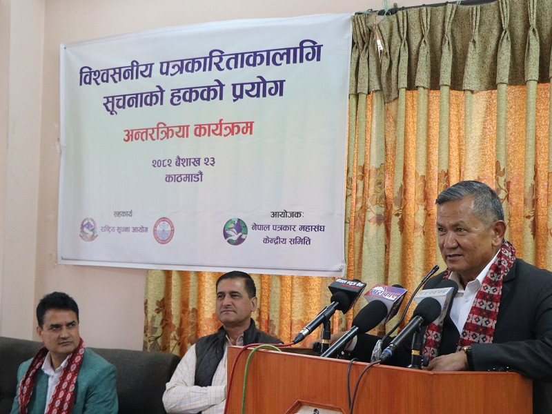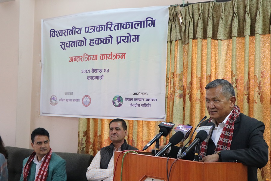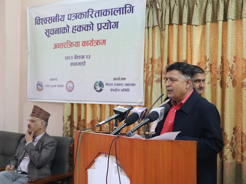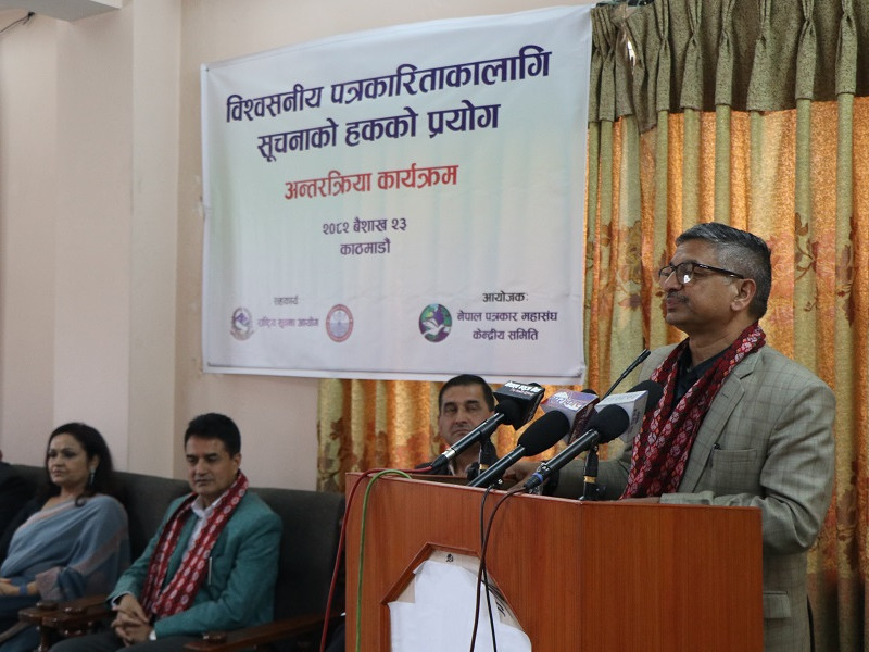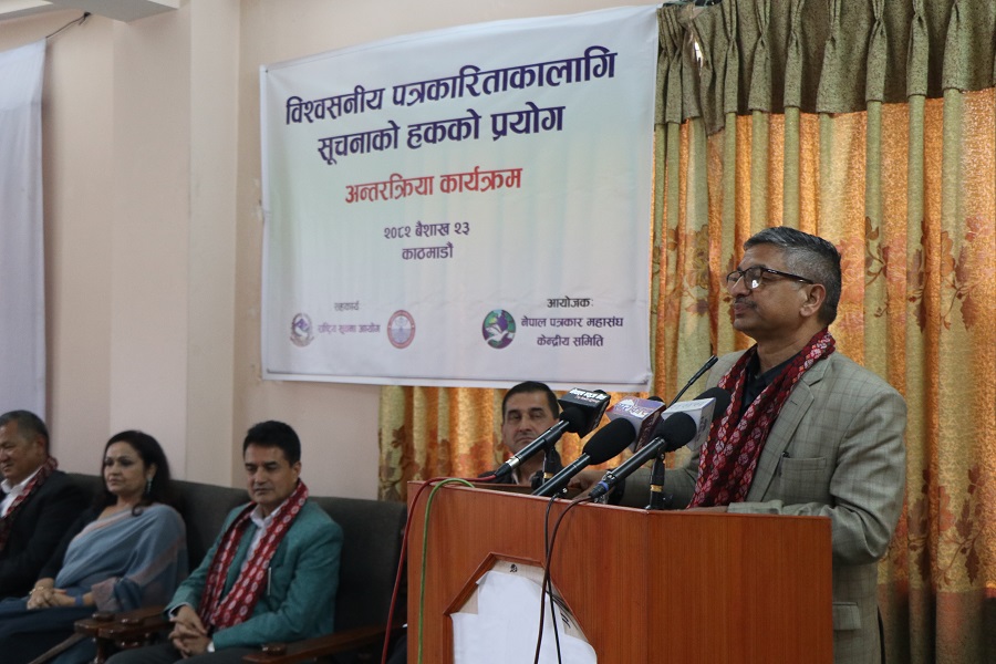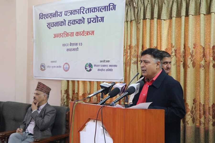 नेपाल पत्रकार महासंघद्वारा आयोजित विश्वसनीय पत्रकारिताका लागि सूचना हकको प्रयोग विषयक अन्तरक्रिया कार्यक्रमका तस्विर ।