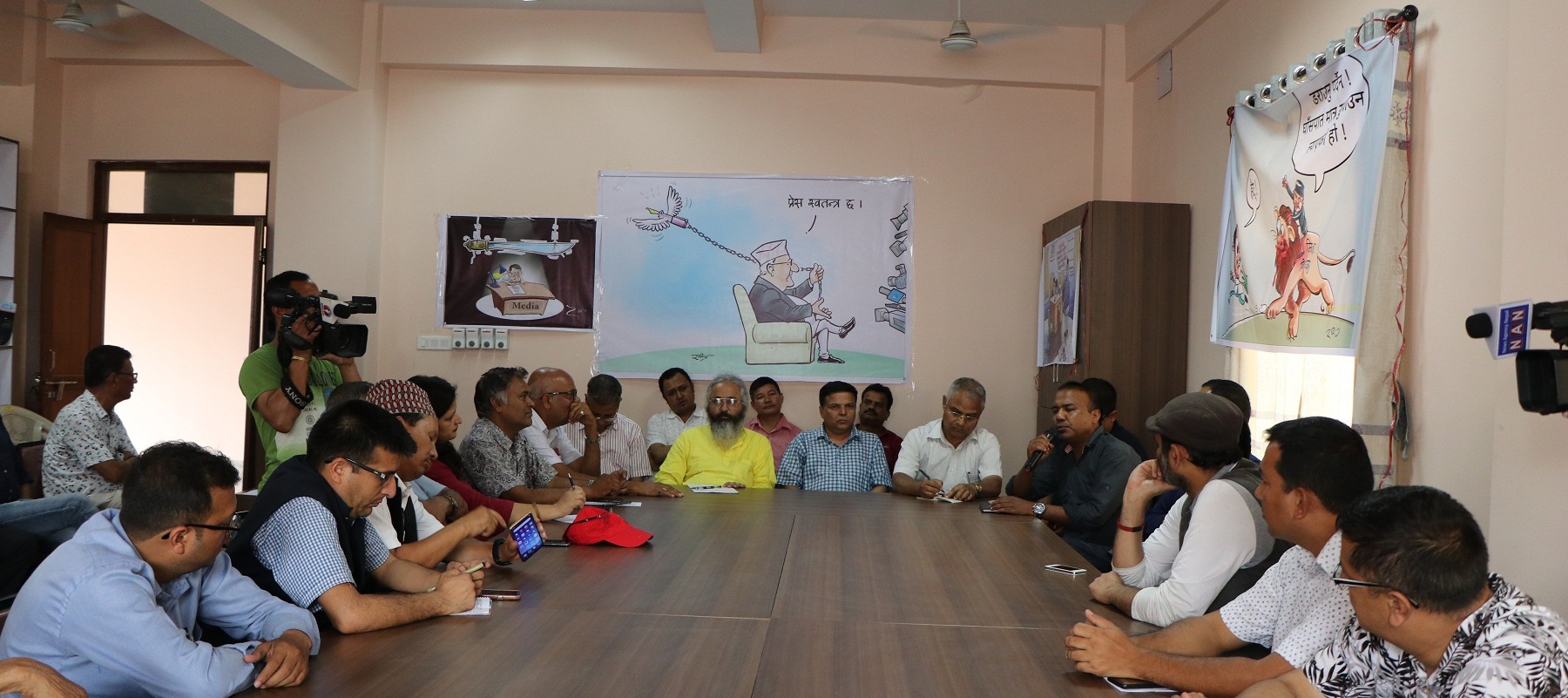 सरकारले सोकारवालासंग छलफल नै नगरि विधेयक ल्याएको कारण सरकार नै विबाधित भएको बताउनुभयो । उहाँले प्रेससंग सरोकार राख्ने सबै विषयबस्तुहरुमा महासंघको प्रत्यक्ष सहभागितामा गराउनुपर्ने धारणा राख्नुभयो । महासंघका प्रर्व अध्यक्ष शिव गाँउलले जनताबाट चुनिएको भनिएको नेत्रित्व स्वयं विचार तथा अभिव्यक्ति स्वतन्त्रताको कुरामा मुलत पत्रकारहरुमाथि तथा आमसञ्चारमाध्यममाथि चर्को सजाय गर्ने नियतबाट आइरहेको बताउनुभयो । उहाँले आमसञ्चार तथा पत्रकारितमा माथि चर्को दण्ड सजाय थोपरे सरकार जनताको विचार तथा अभिव्यक्ति स्वतन्त्रता माथि नियन्त्रण गर्न खोजेको बुझिएको बताउनुभयो । कार्यक्रममा बोल्दै महासंघका महासचिव रमेश विष्टले नेपालमा प्रेस स्वतन्त्रता कुण्ठित गर्ने र स्वतन्त्र ढंगले पत्रकारिताको वातावरणलाई समाप्त पार्ने किसिमबाट सरकारले मिडिया सम्बन्धी विधेयक ल्याएका कारण महासंघ आन्दोलनमा उत्रिन बाध्य भएको बताउनुभयो । उहाँले सरकारले ति विधेयक प्रेस स्वतन्त्रता मैत्री नबनाए महासंघ चौथो चरणको आन्दोलनमा जान बाध्य हुने बताउनुभयो ।
