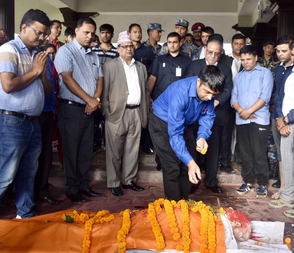 उहाँको पार्थीव शरीरमा पूर्वप्रधानमन्त्रीद्वय पुष्पकमल दाहाल ‘प्रचण्ड’ र डा. बाबुराम भट्टराईसहित प्रतिनिधिसभाका सम्मानीय सभामुख कृष्णबहादुर महरालगायत विभिन्न राजनीति दलका नेताहरु र नेपाल पत्रकार महासंघका पदाधिकारी, केन्द्रीय सदस्यहरु एवं पूर्वपदाधिकारीहरुलगायत पत्रकारहरुले श्रद्धाञ्जली दिएका थिए । स्वर्गीय शर्माका श्रीमती, दुई छोरा र एक छोरी हुनुहुन्छ । अध्यक्ष आचार्य स्वर्गीय शर्माका जेठा छोरा हुनुहुन्छ ।