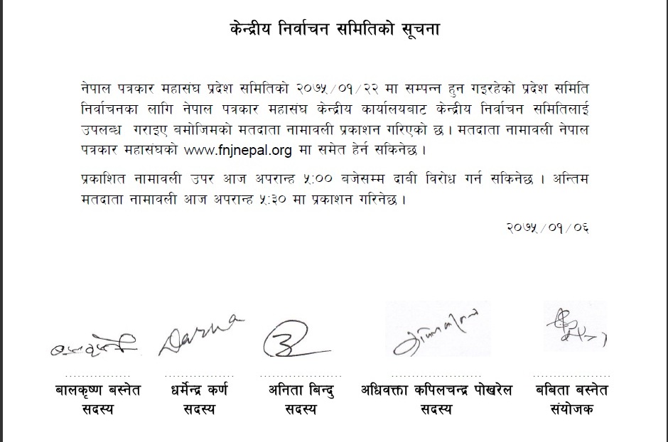 प्रदेश नं ४ काे मतदाता नामावली (नवलपरासी बाहेक) । नामावली हेर्नका लागि भ्यू अल क्लिक गरि डाउनलाेडमा जानुहाेला ।